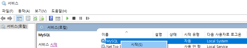 MySQL 서비스가 로컬 컴퓨터에서 시작했다가 중지되었습니다.