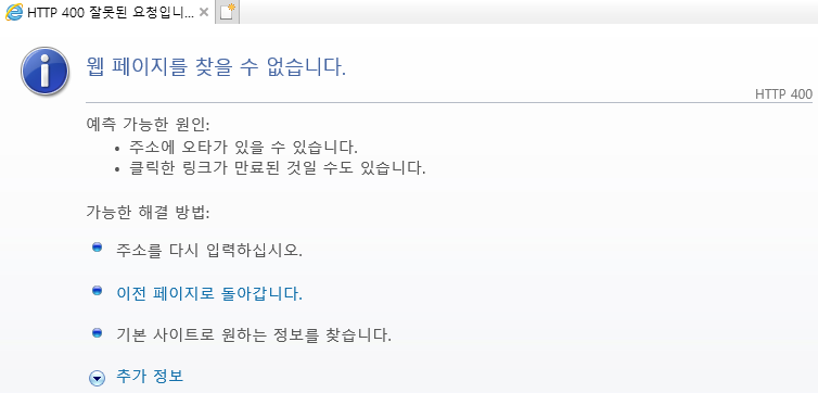 ✔ 위 내용을 적용했을때 크롬에선 되지만 IE에서 안되는 경우가 발생 다른 브라우저는 잘만되는데 IE는 외않됀데? IE는 한글이나 특수문자를 인코딩 해주지 않는다고 한다. 그만좀쓰자.✔ Solution 현재 작성된 코드는 view단에서 GET방식으로 파일명을 전달하고 있다 구글링 결과 Query String에 [],.;(특수문자) 또는 한글이 포함되면 발생하는 에러라고 하는데 다른 브라우저들은 인코딩처리를 해주지만 IE에서는 인코딩 처리를 안해준다고 한다 그러므로 GET방식으로 요청하기전, view단에서 URI를 JS의 encodeURI() 함수를 이용해서 인코딩 처리를 한뒤 전달하도록 한다 encodeURI() 함수는 아래사이트를 참고하자