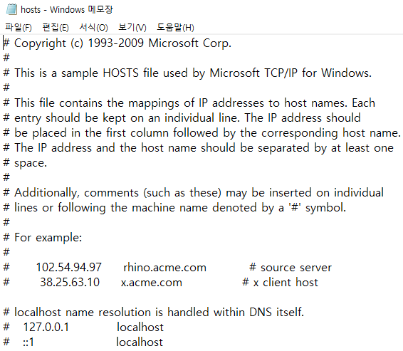1. hosts파일은 관리자 권한으로 실행해야 수정할 수 있다