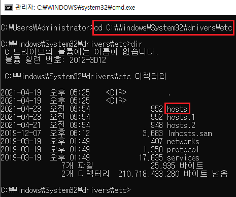 2. hosts 파일이 있는 경로로 이동