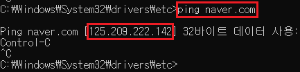 네이버(naver.com)의 IP는 125.209.222.142다