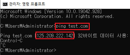 ping [테스트할 도메인 네임]