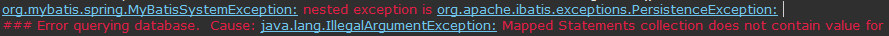 [에러 로그] org.mybatis.spring.MyBatisSystemException: nested exception is org.apache.ibatis.exceptions.PersistenceException: ### Error querying database. Cause: java.lang.IllegalArgumentException: Mapped Statements collection does not contain value for
