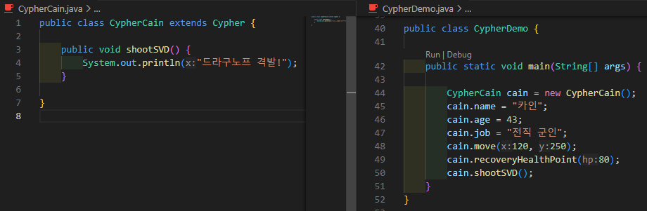 자식클래스인 CypherCain클래스에서도 변수와 메소드를 추가해줄수있다