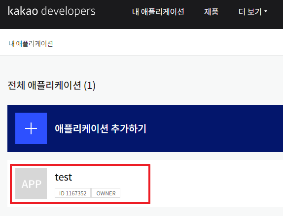 [ 1-1. 플랫폼 등록 ] [내 애플리케이션] 페이지에 접속해 애플리케이션 추가하기를 해준다 API사용을 위한 애플리케이션 추가하기