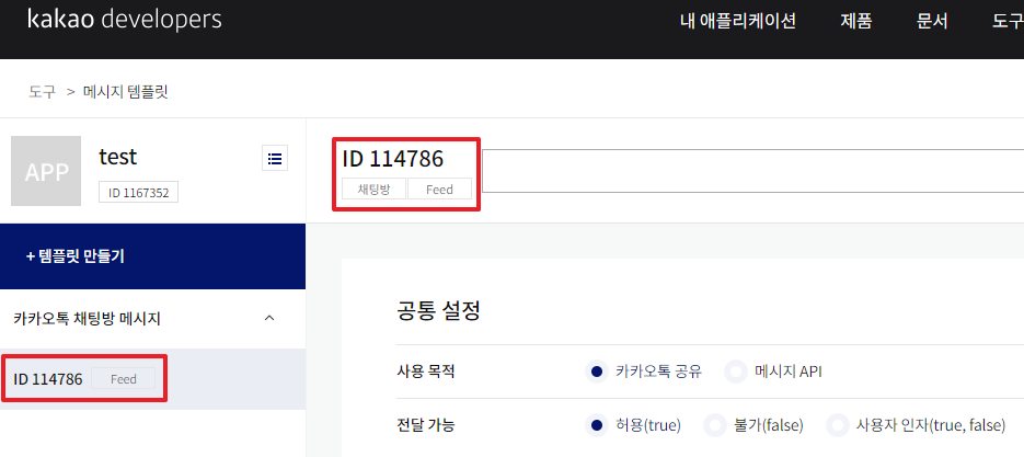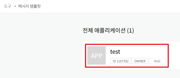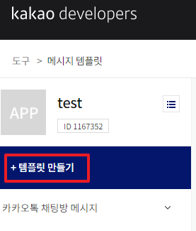 114755값은 내가 미리 등록해둔 내 메시지템플릿의 id값이다 여러분들도 메시지템플릿을 등록하고 해당id값을 넣어 요청해야한다 메시지 템플릿을 등록하는 과정은 다음과 같다