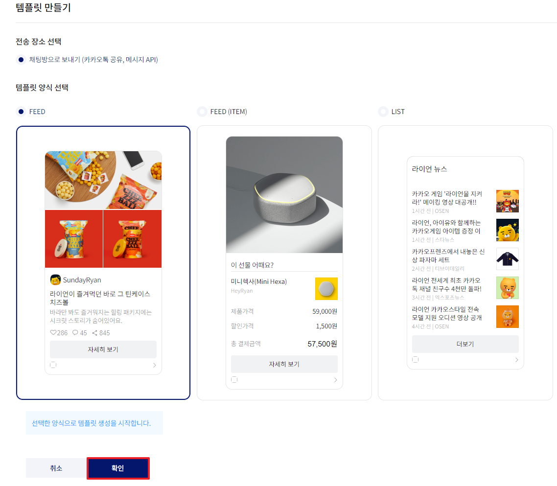 가 이해가 안갈수있는데 간략히 설명하자면 개발자센터에서 메시지의 템플릿의 관리가 가능하며 기본템플릿 또는 커스텀템플릿을 메시지 전송할수있다