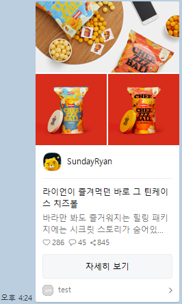 성공시 본인의 카톡을 보면 전송이 잘되어있는것을 확인할수있다 카카오톡 메시지전송API가 완료된 화면 위 내용대로 전송했다면 실패했을텐데 Body내용 때문일것이다