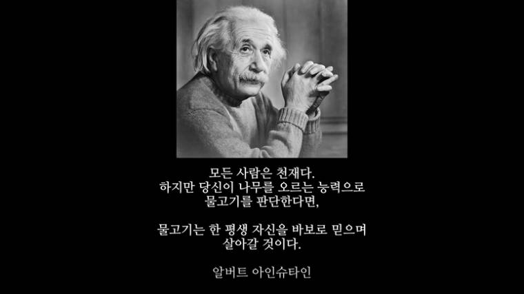 [Albert Einstein] 타인과 비교하지 않기 타인과 비교하면서 부족함을 느끼고,상대적 박탈감을 느끼는것만큼 멍청하고 쓸모없는짓은 없다.본인과 비교해야할 대상은 타인이 아니라1달전의 나, 1주일전의 나, 어제의 나,그리고 오늘밤 잠들기전까지 하루를 보낸 자신이다.자신의 장점을 찾아라. 그리고 끊임없이 성장시켜라. Life_Log/Philosophy 2021.06.01